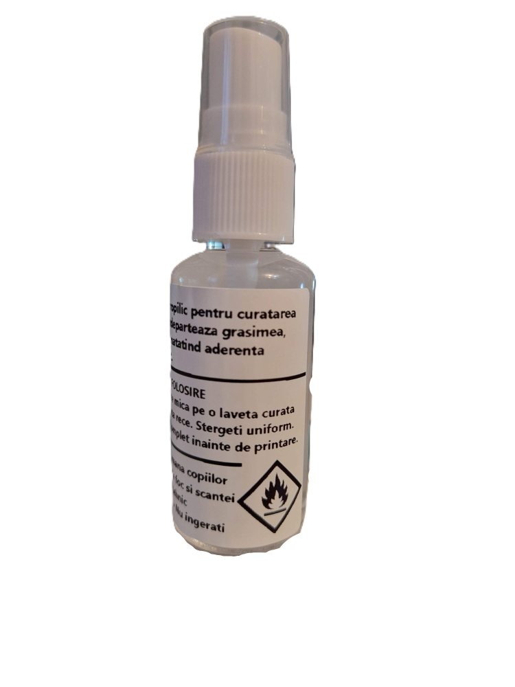 Categoria include produse destinate curatarii si intretinerii imprimantelor 3D, precum spray-uri cu alcool IPA, solutii pentru curatarea patului de printare, accesorii pentru intretinerea placilor PEI si a nozzle-ului.