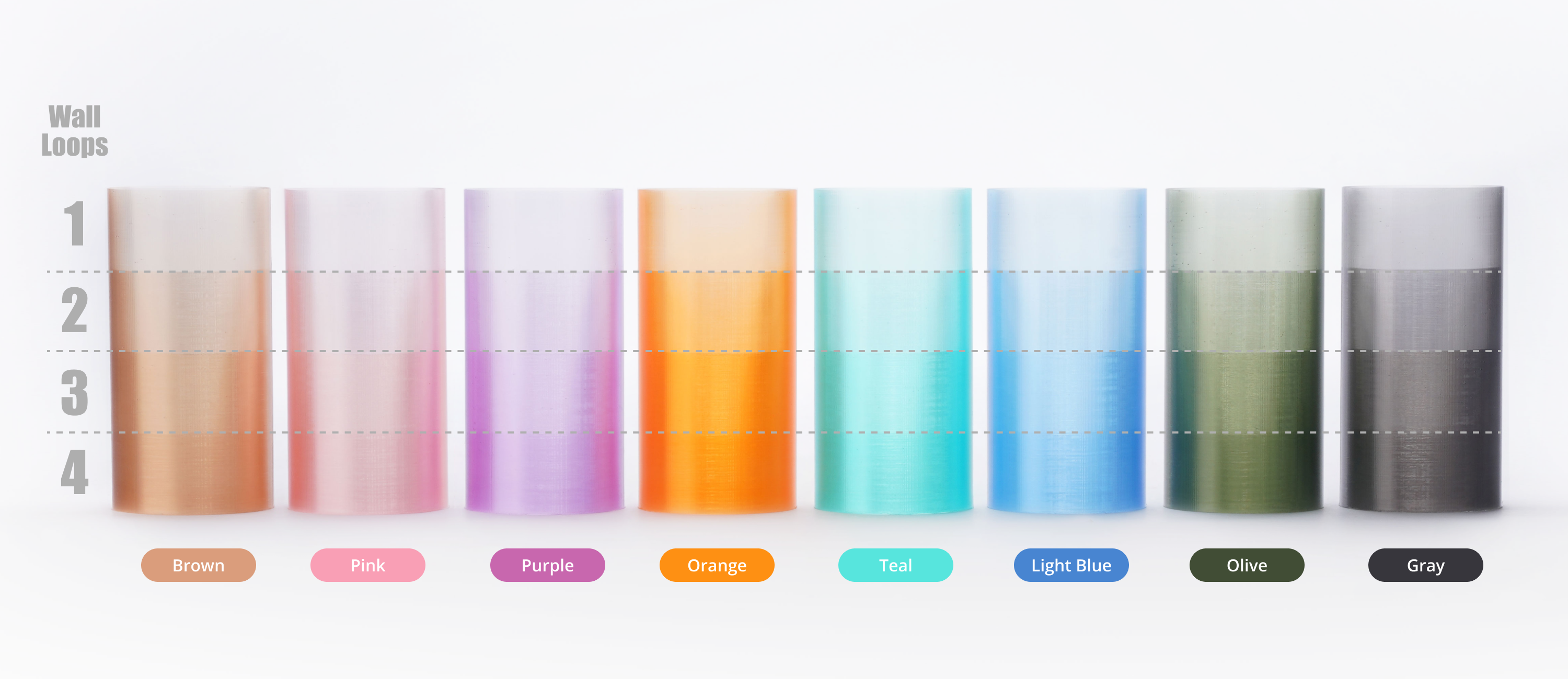 Bambu PETG Translucent iti permite sa obtii efecte vizuale variate, de la translucid colorat pana la aproape transparent, in functie de: