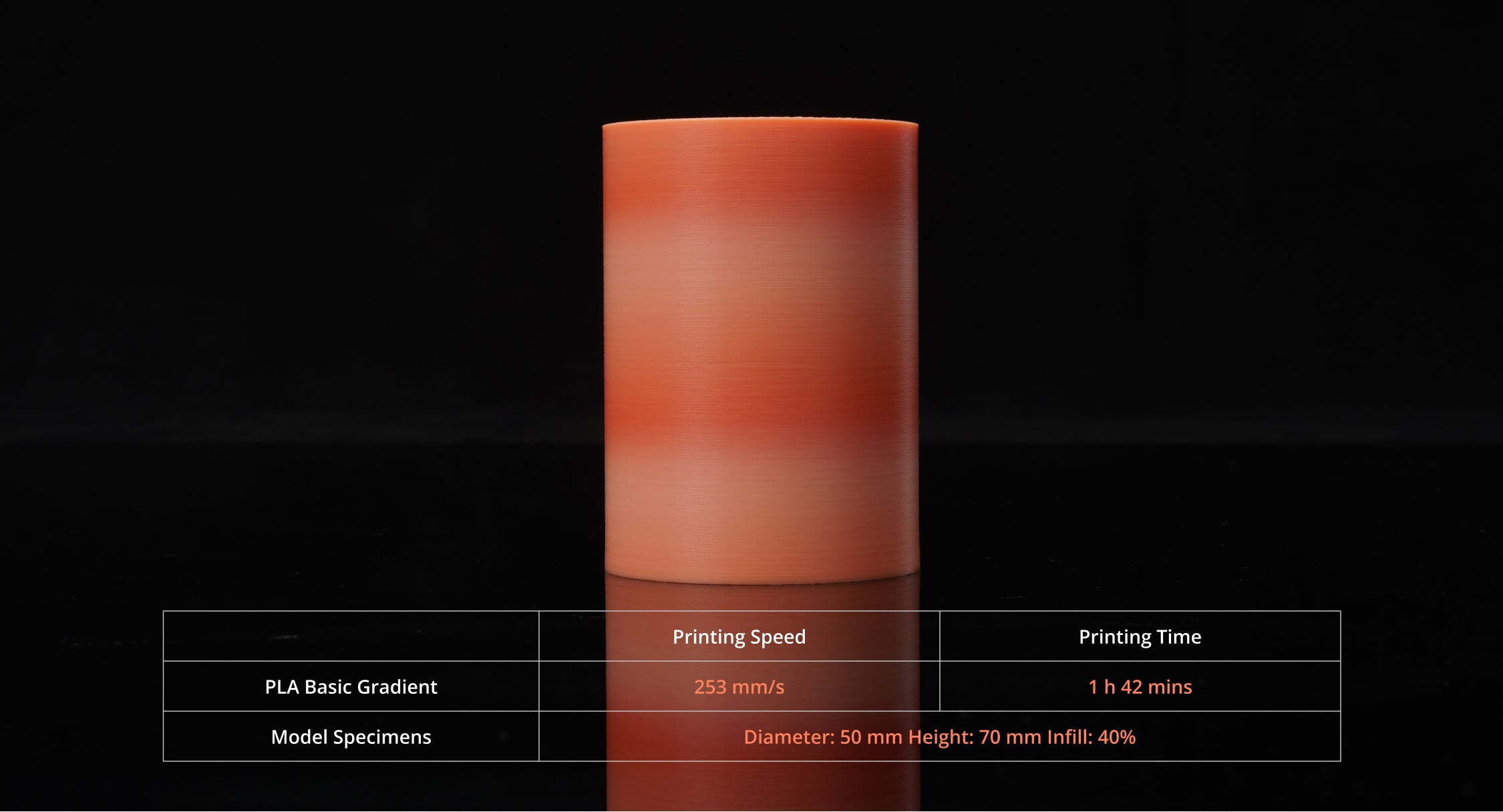 Modelele mici, care consumă o cantitate redusă de filament, vor afișa un gradient mai subtil. Modelele mari, cu consum ridicat, vor beneficia de o tranziție de culoare mult mai vizibilă și uniformă.