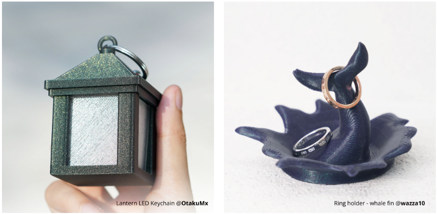 Microsferele de sticla din compozitie creeaza jocuri de lumina si reflexii diferite in functie de unghiul de privire. Astfel, printurile realizate cu PLA Galaxy: