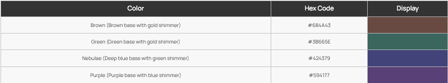 Culori disponibile (PLA Galaxy – Hex Code)