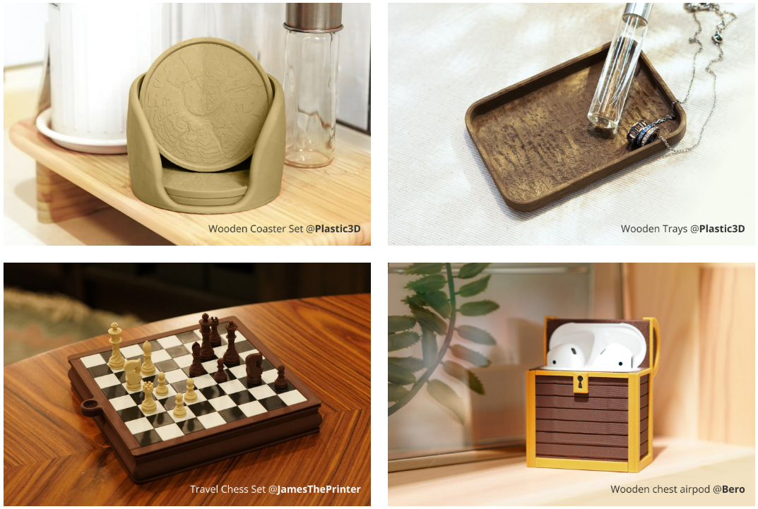PLA Wood se integrează perfect cu alte filament PLA de la Bambu, precum PLA Basic și PLA Matte. Poți combina texturi naturale de lemn cu culori vibrante într-un singur print pentru a da viață unor modele complexe, unice, cu detalii bogate.