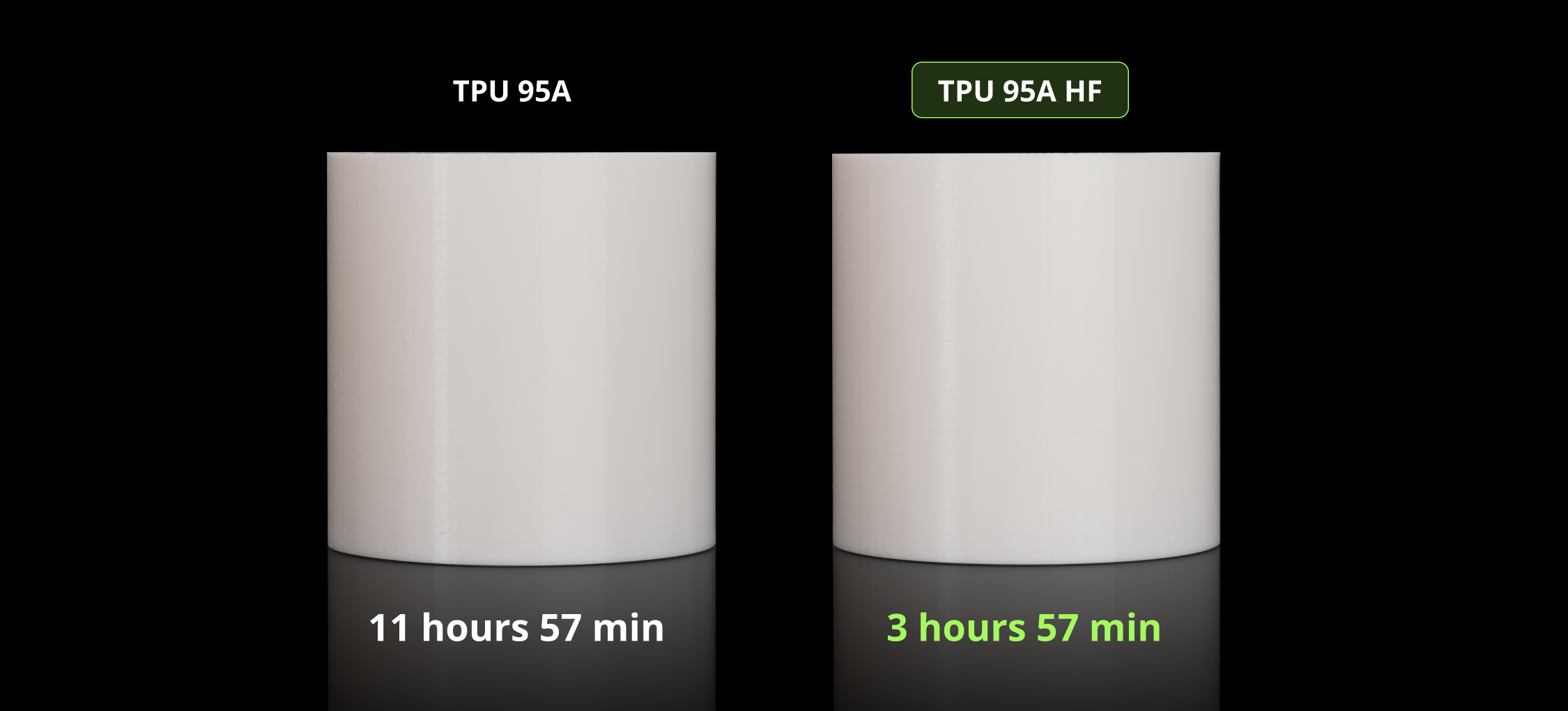 Cu Bambu TPU 95A HF, eficienta printarii TPU creste semnificativ. Testele arata diferente clare fata de TPU 95A standard: